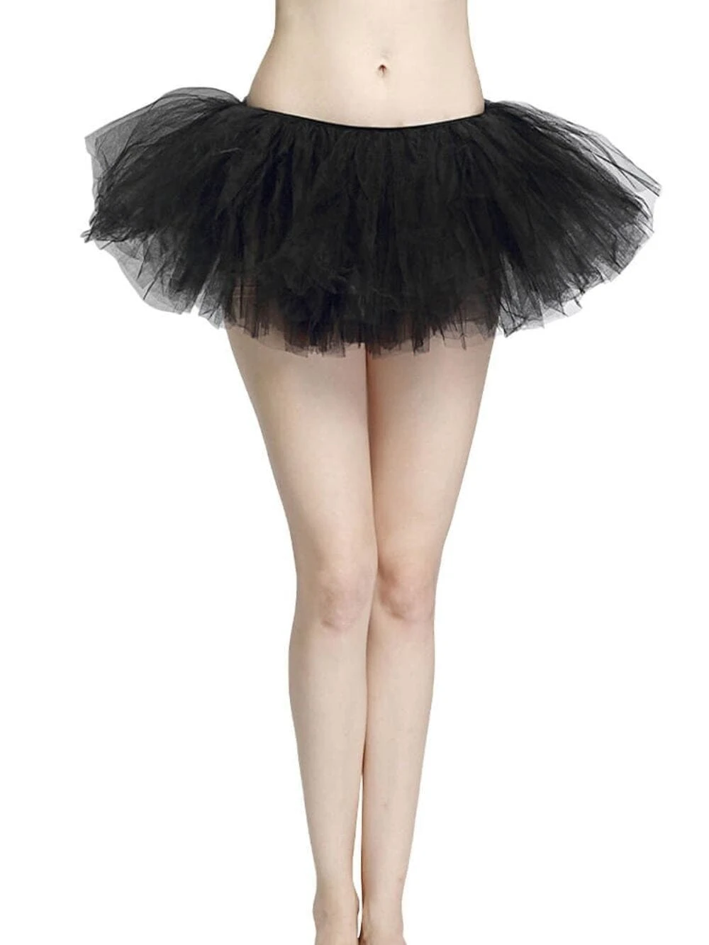 - 5 Fluffy Layers – 100% Polyester Tulle with stretch black waistband inside.