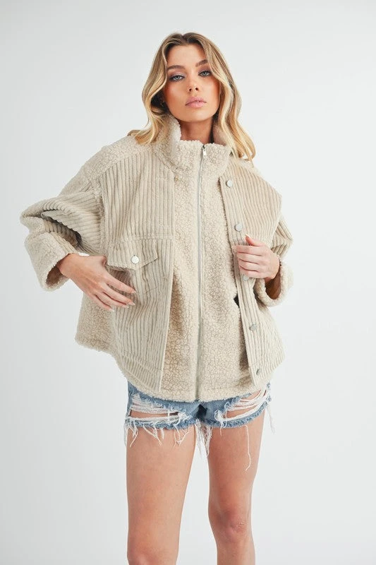 The fake two pieces turtleneck Sherpa jacket with pockets is a cozy and stylish outerwear option. Featuring a turtleneck design and Sherpa material, it provides warmth and comfort. The “fake two pieces” style gives the illusion of layering without the bulk. With convenient pockets for storing essentials, this jacket is both practical and fashionable for chilly weather.