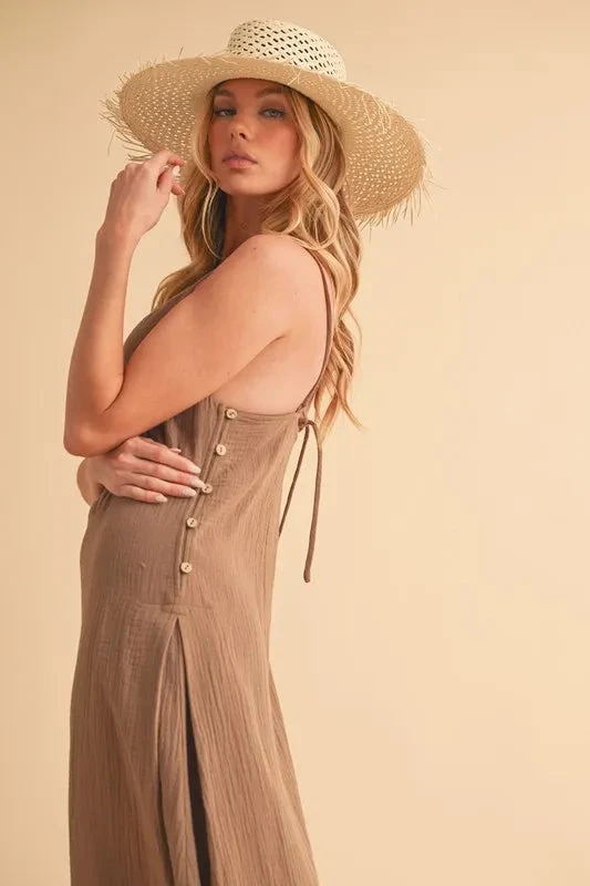 This midi cami dress is adorned with stylish side summarys for a unique and trendy touch. The sleek design offers a flattering silhouette that can be dressed up or down with ease. Elevate your wardrobe with this chic side summary midi cami dress.