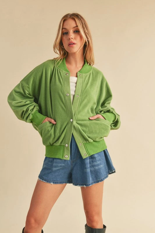 The Snap Down Drop Shoulder Brushed Jacket is a trendy outerwear piece featuring snap-summary closure. It boasts a relaxed drop shoulder design for a comfortable fit. The brushed fabric adds a soft and cozy feel, perfect for cooler weather. This versatile jacket can be styled casually or dressed up for a chic look.