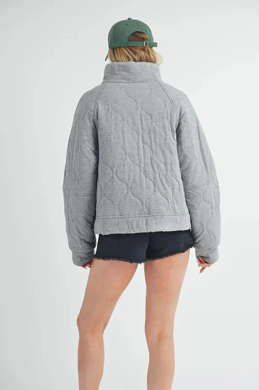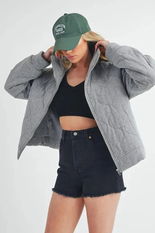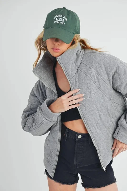 A zip-up raglan sleeve quilted jacket is a cozy and stylish outerwear piece featuring a quilted design and raglan sleeves. The zip-up closure provides ease of wear and adds a modern touch to the jacket. Raglan sleeves are characterized by diagonal seams that extend from the underarm to the collar, offering a relaxed and comfortable fit. This type of jacket is perfect for cooler weather, providing warmth and a trendy look. Pair it with jeans and sneakers for a casual yet fashionable outfit.
