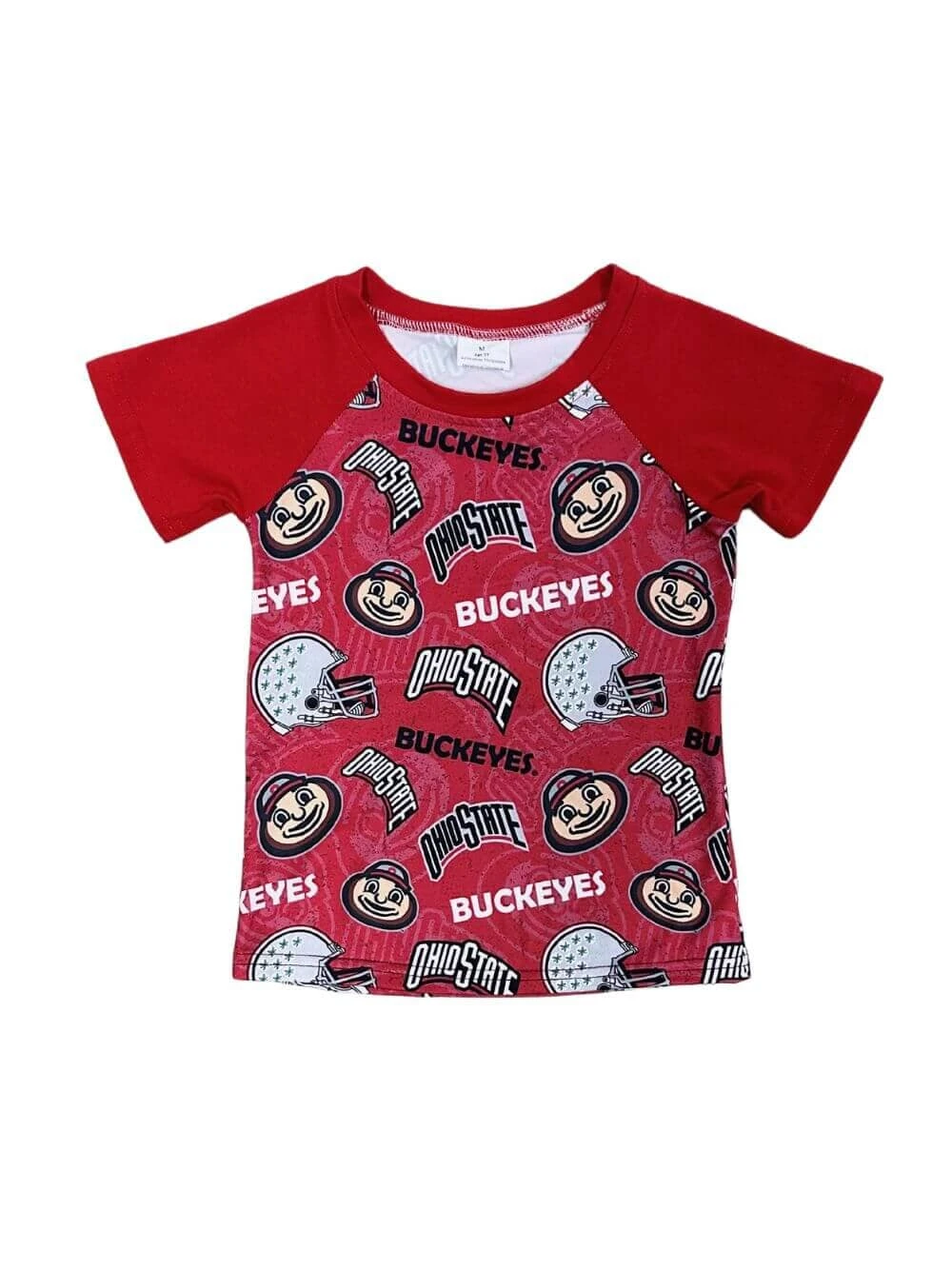 Showcase Buckeye pride with our Always a Buckeye Boys Raglan Football T-Shirt. Featuring a classic raglan design and bold football graphics, this shirt is perfect for young Ohio State fans. Comfortable and stylish, it’s ideal for game days, school, or casual outings. Let him sport his team spirit with this must-have tee. Shop now for this essential Ohio State fan gear! And be sure to check out our other must have new arrivals.