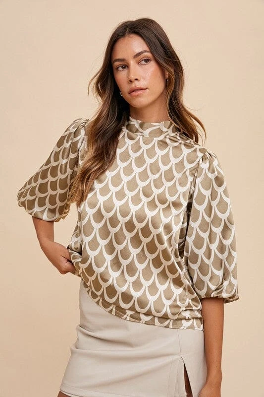 The Tie Back Abstract Print Mock Neck Half Sleeve Blouse is a trendy and chic top. It features an abstract print design that adds a modern and artistic touch to the blouse. The mock neck detail gives it a sophisticated and stylish look. With a tie back feature, this blouse offers a unique and flattering silhouette. Perfect for adding a bold and fashion-forward element to your outfit, whether paired with jeans for a casual day out or with trousers for a more polished ensemble.
