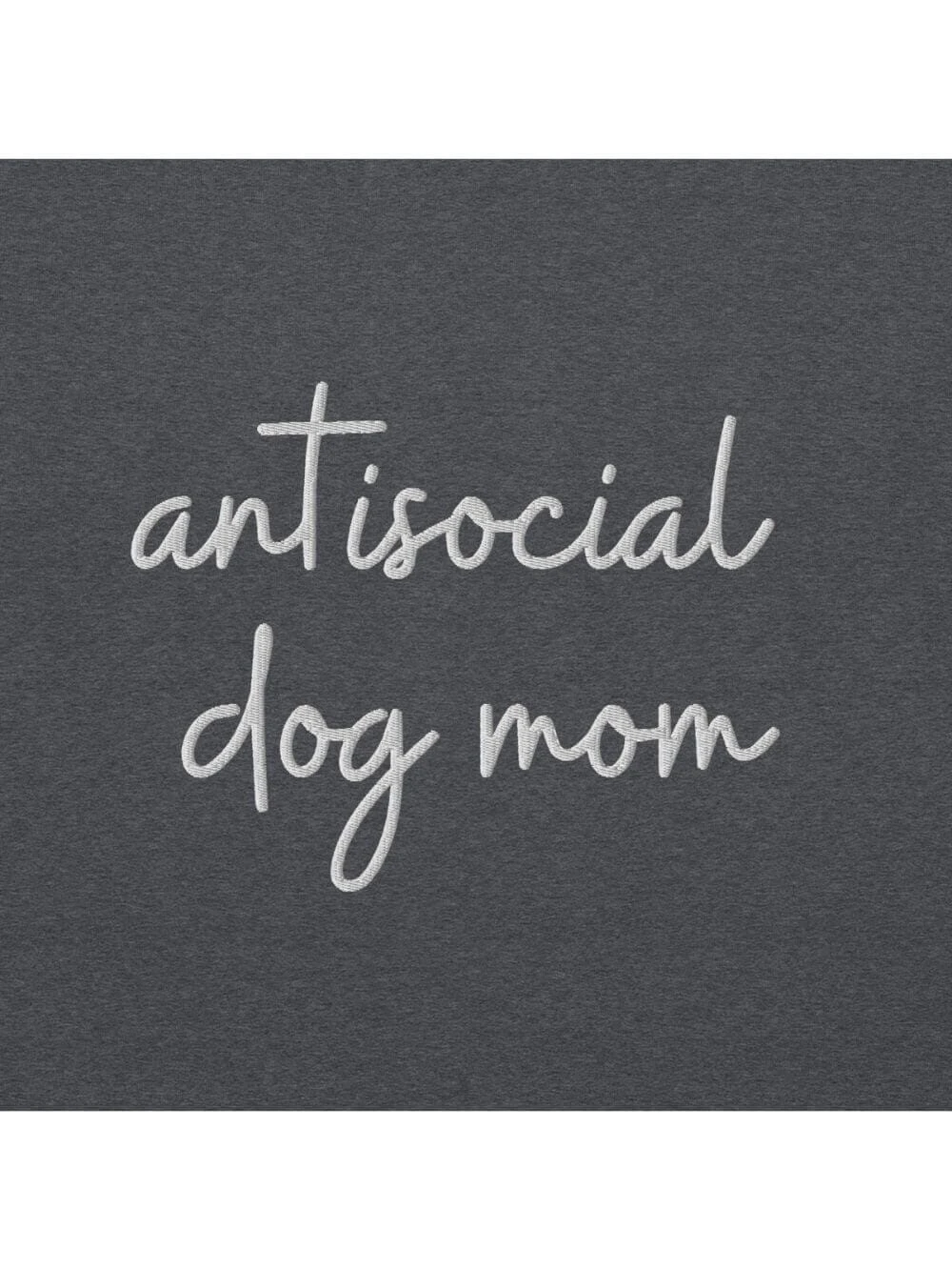 Stay cozy with our Antisocial Dog Mom Embroidered Crewneck Sweatshirt. This dark gray sweatshirt features stylish white embroidery, perfect for dog moms who love comfort and humor. Made from high-quality fabric, it’s ideal for casual outings, lounging, or dog walks. Show off your unique style and love for dogs. Shop now for this must-have wardrobe essential!