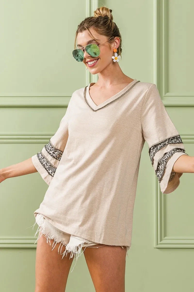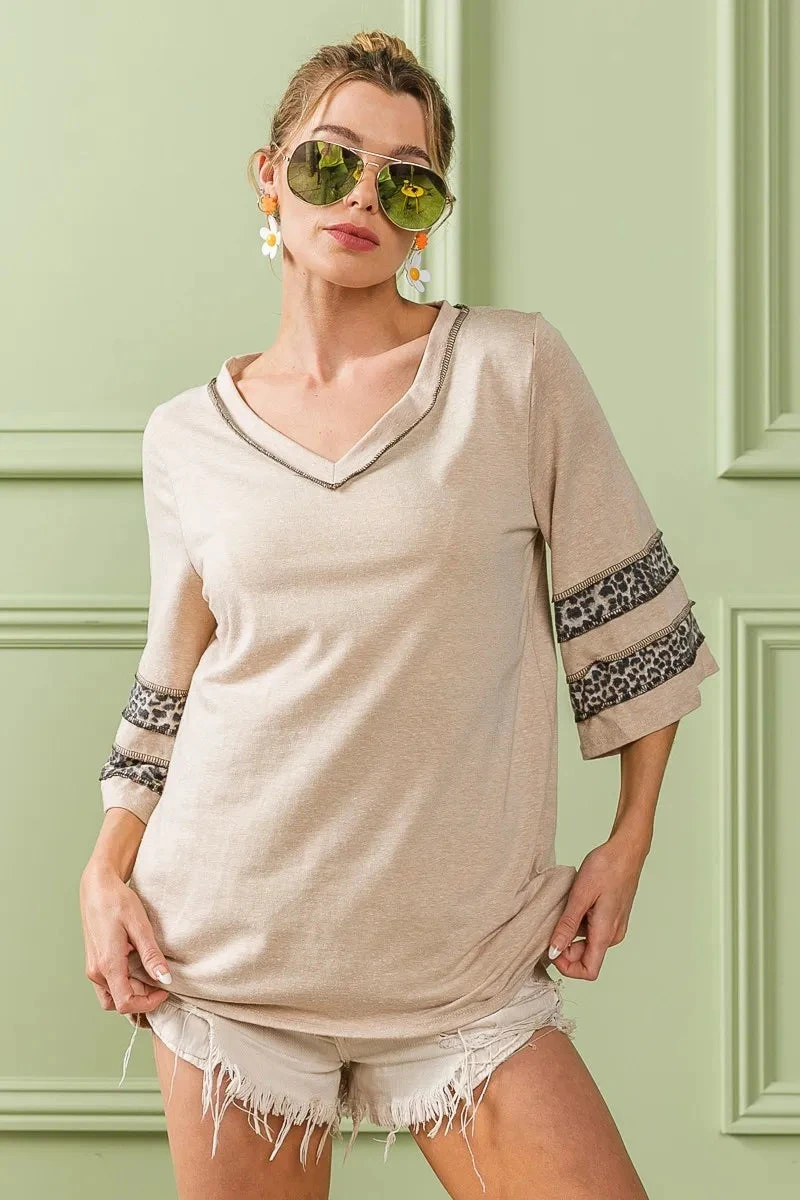 This triblend knit top features a chic leopard band detail for a trendy and fashionable look. The leopard band adds a pop of animal print to the classic knit top, giving it a bold and stylish edge. Made with soft and comfortable triblend fabric, this top offers both style and ease of wear. Elevate your wardrobe with this versatile and on-trend top that effortlessly combines comfort with a touch of print for a standout outfit.