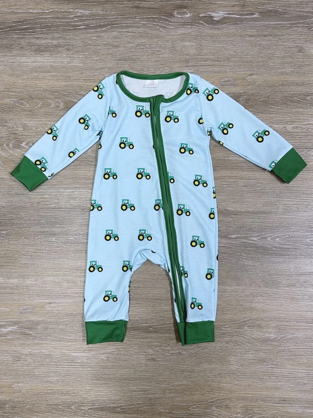 Our Big Green Tractor Zip Up Baby Romper is a farm-fresh favorite for little ones! This light blue romper features playful green tractors all over, complete with green trim for an extra pop. Made for comfort and cuteness, it’s easy to zip up and perfect for active play or cozy naptimes. A fun choice for tractor-loving families! And be sure to check out our other must have new arrivals.