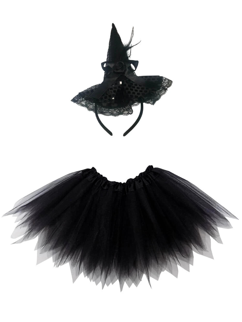 ✅ Complete Pixie Witch Costume Set – Includes a black tutu skirt and a stylish mini witch hat headband for a fun and enchanting look.