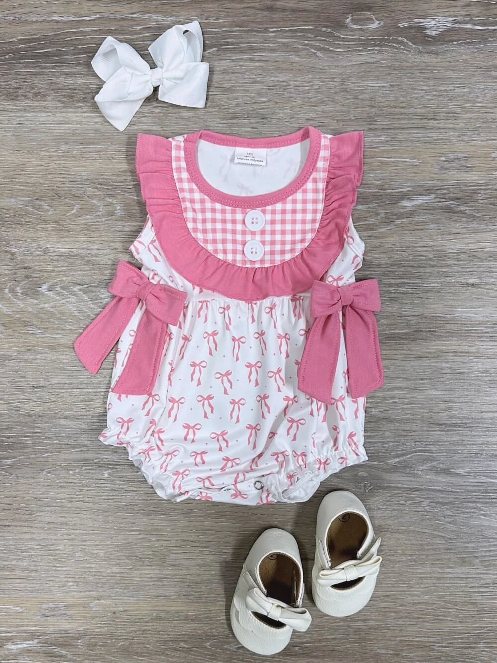Our Blushing Bows Girls Coquette Baby Bubble Romper is a charming addition to your little one’s wardrobe. Featuring hot pink bows and ruffle details, this romper offers a sweet and stylish look. Perfect for any occasion, its soft, comfortable fabric ensures a cozy fit, while the playful design adds an adorable touch to her outfit. And be sure to check out our other must have new arrivals.