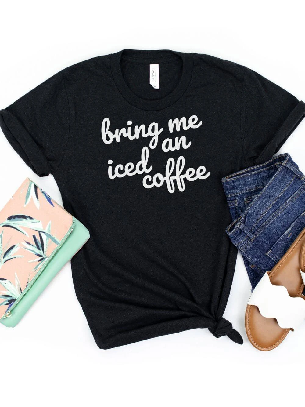 Introducing our Bring Me an Iced Coffee Women’s Jersey Short Sleeve Graphic Tee! Made from high-quality Bella + Canvas brand material, this t-shirt is perfect for any coffee-loving woman. The playful white font on the front displays the words “Bring Me an Iced Coffee” making it a perfect shirt for the coffee lover who’s always on the go. Available in 7 different colors and 7 sizes, you’re sure to find the perfect match for your personal style and fit. Whether you’re running errands or just lounging at home, you’ll be comfortable and stylish in this coffee-inspired tee. Grab yours today and show off your love for iced coffee!