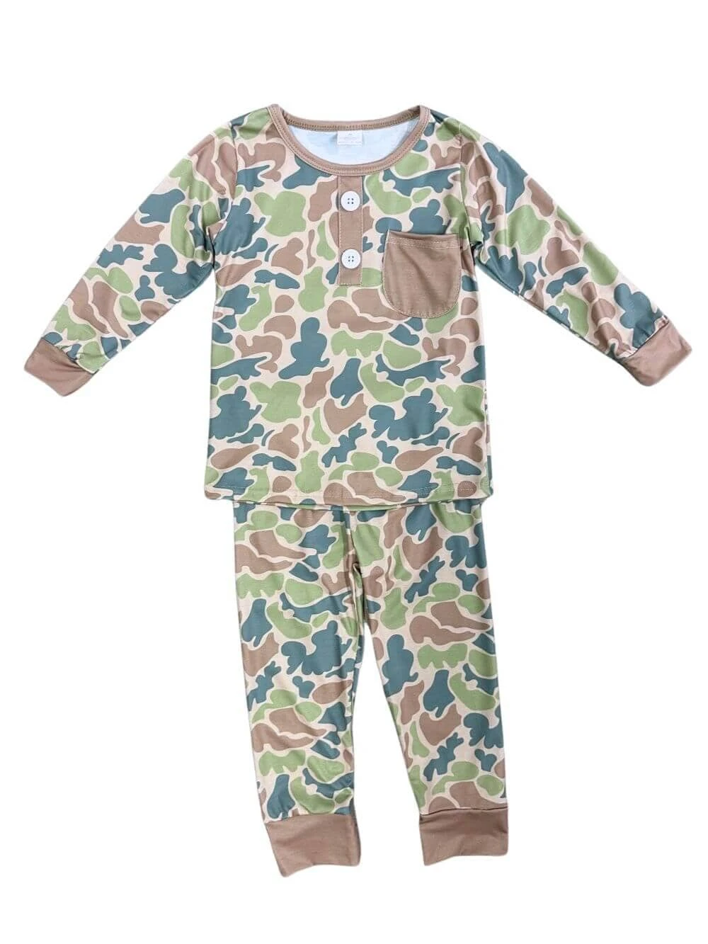Our Camo Camo Boys or Girls 2 Piece Pajamas Set is perfect for bedtime comfort and style! This cozy set features a classic camouflage print on both the long sleeve top and matching pants. Soft and breathable, it’s great for year-round wear. Perfect for adventurous kids who love to lounge or play! And be sure to check out our other must have new arrivals.
