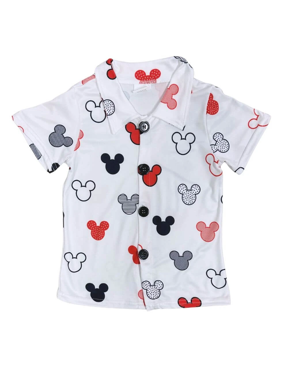 Add some classic character to his wardrobe with our Classic Mouse Boys Red, White, & Black Button Down Top! This stylish short-sleeve shirt features a crisp white background with red and black mouse heads all over. Perfect for theme park adventures, birthdays, or everyday fun. Button-up design keeps him looking sharp while staying comfy all day long! And be sure to check out our other must have new arrivals.