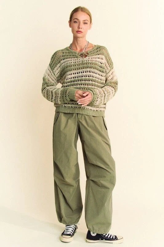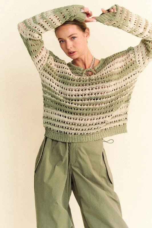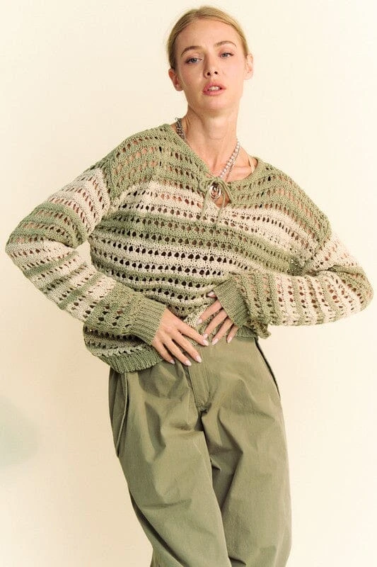 The Contrast Striped Crochet Drop Shoulder Knit Cover Up is a fashionable and eye-catching piece that combines contrasting stripes with intricate crochet detailing. The drop shoulder design adds a relaxed and casual feel to the cover up, perfect for a laid-back yet stylish look. This versatile knit cover up can be layered over a variety of outfits, adding a pop of texture and color to your ensemble.