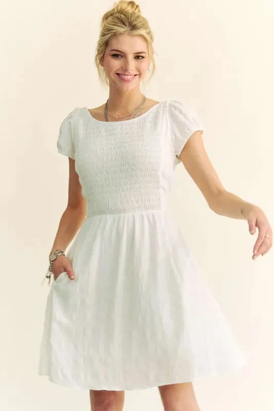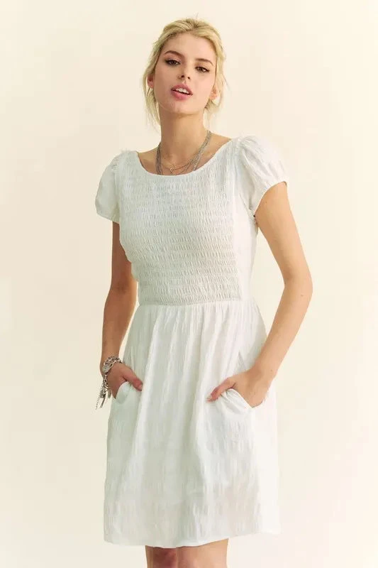 The crossed back short sleeve dress with pockets is a versatile and practical option for your wardrobe. The crossed back detail adds a touch of interest and style to the dress. The short sleeves offer both coverage and breathability. The addition of pockets provides functionality and convenience. This dress is perfect for a casual day out, offering comfort and ease of movement. Pair it with sneakers for a laid-back look or dress it up with sandals for a more polished ensemble.