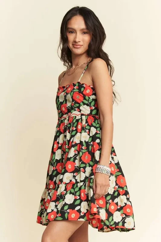 The floral scalloped cutout back mini dress is a flirty and feminine choice for a special occasion. The floral pattern adds a touch of romance and charm to the dress. The scalloped detailing along the back creates a subtle and elegant finish. The cutout back design adds a hint of allure and style, perfect for a night out or a summer event. This mini dress is ideal for showing off your playful side while still looking sophisticated and chic. Pair it with heels and delicate jewelry for a polished and eye-catching ensemble.