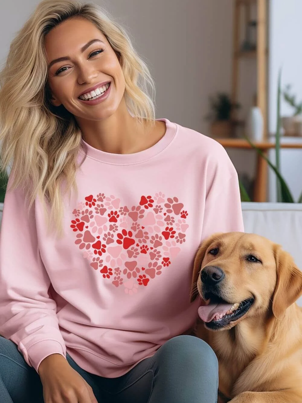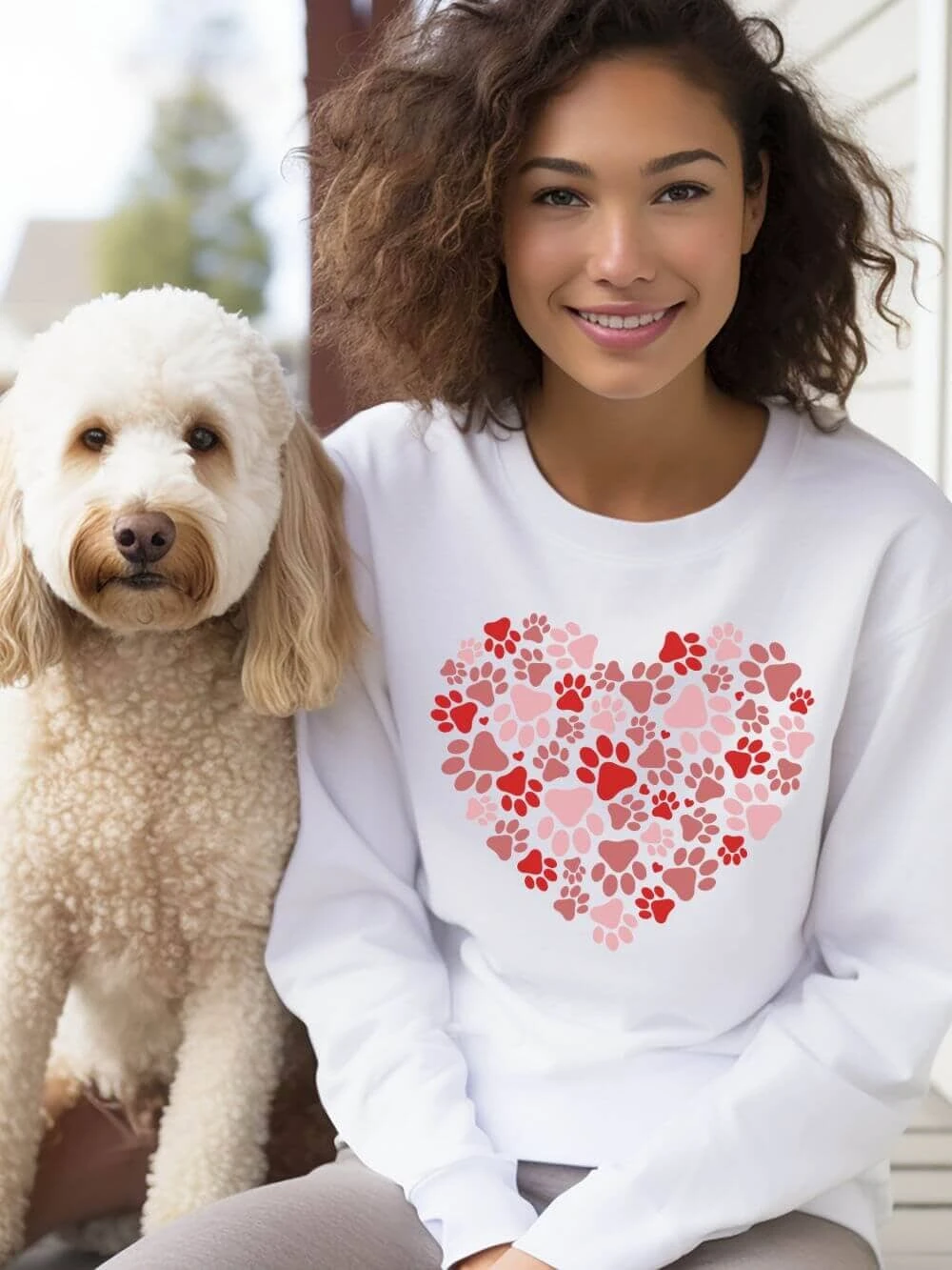 Celebrate your fur baby’s love with our Dog Paw Heart Dog Mom Valentine’s Day Long Sleeve Sweatshirt, offered in five delightful colors. This cozy sweatshirt is perfect for dog-loving moms, combining comfort and style. Show your adoration for your furry companion this Valentine’s Day and beyond with this charming and comfortable sweatshirt.