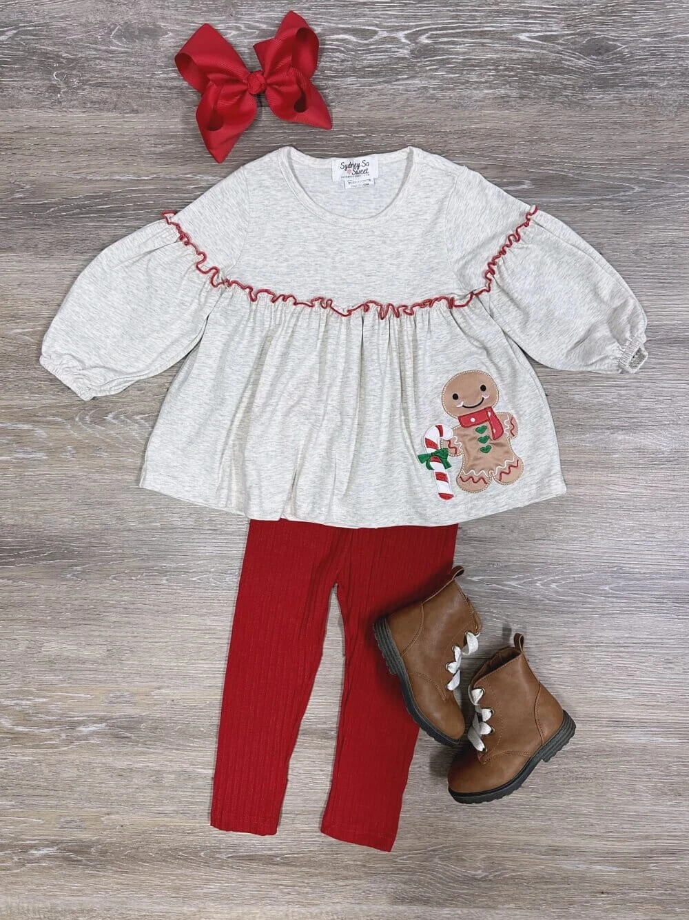 Our Gingerbread Cutie Girls Tunic Top & Red Leggings Outfit is a festive delight for the holiday season. The ivory tunic features an adorable gingerbread man design, bringing cheerful charm to your little one’s wardrobe. Paired with vibrant red leggings, this cozy outfit is perfect for holiday gatherings, family photos, or everyday wear, ensuring comfort and style all season long! And be sure to check out our other must have new arrivals.