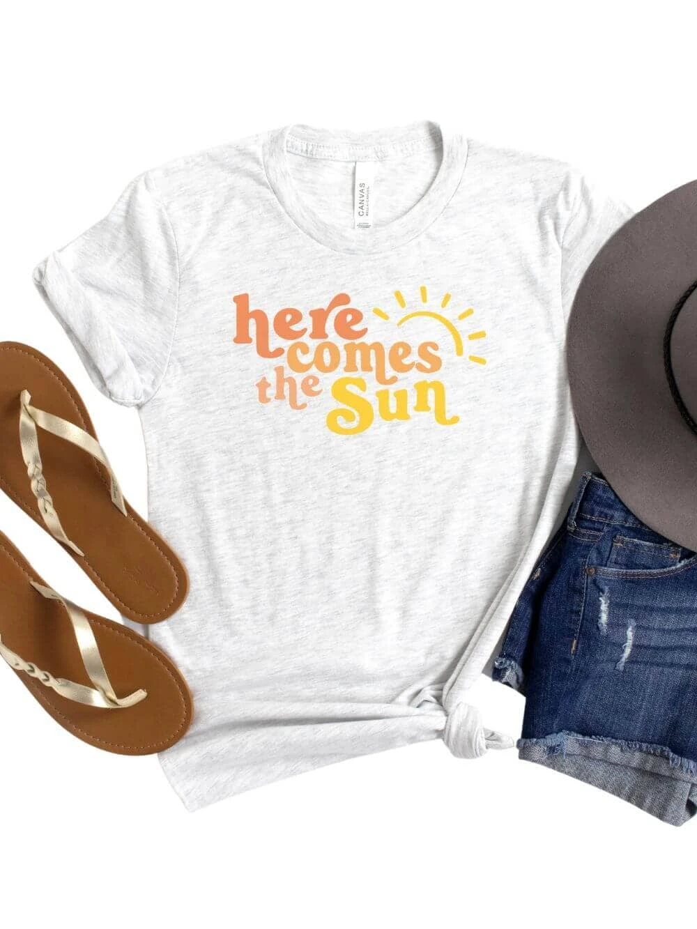 Introducing the Here Comes the Sun Women’s Graphic t-shirt, available in three colors and sizes XS-XXXL. Made from high quality Bella + Canvas brand t-shirt material, it’s soft, comfortable, and perfect for summer. The playful graphic design captures the carefree spirit of summer, and the eco-friendly construction makes it a socially responsible choice. Pair it with your favorite shorts, skirts, or jeans for a casual yet stylish look. This tee is perfect for vacations, beach days, and more. Upgrade your summer wardrobe with the Here Comes the Sun Women’s Graphic t-shirt.