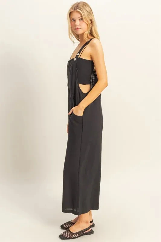 The Textured Wide Leg Overall is a versatile and stylish wardrobe piece that offers comfort and fashion-forward style. The wide leg silhouette gives a trendy and relaxed look to the overalls. The textured fabric adds depth and interest to the garment. These overalls can be easily dressed up with a fitted top and heels for a chic ensemble, or dressed down with a casual t-shirt and sneakers for a more laid-back vibe. Perfect for a casual day out or a fun weekend adventure, these textured wide leg overalls are a versatile and on-trend option for any wardrobe.
