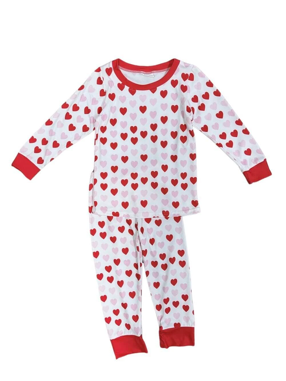 Celebrate love with our I Heart You Red Trim Valentine’s Day Pajamas for girls or boys. These cozy pajamas feature a playful heart design, accented with vibrant red trim on the cuffs and neckline. Perfect for snuggling or festive holiday fun, this unisex set is a charming choice for Valentine’s Day. Available in multiple sizes for the perfect fit! And be sure to check out our other must have new arrivals.