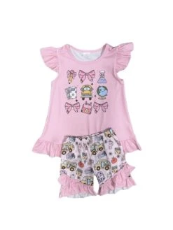 Stay cool and stylish with our Ice Cream Truck Pink Acid Wash Shorts Outfit. The pink acid wash top features a delightful ice cream truck graphic, adding a playful charm. Paired with coordinating ruffle-trimmed shorts, this ensemble is perfect for warm-weather adventures and sweet treats. It’s a fun and fashionable choice for your little one’s summer wardrobe. And be sure to check out our other must have new arrivals.