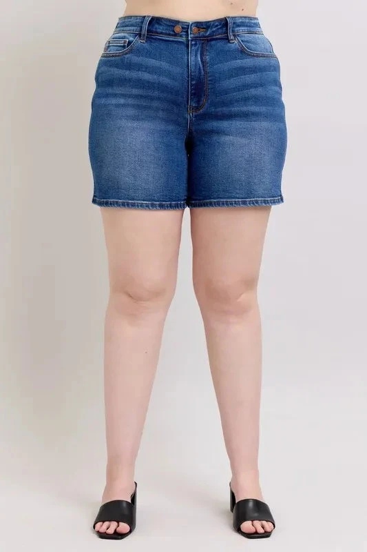 The 2 Button Mid Length Dad Denim Shorts offer a comfortable and casual style for everyday wear. With a mid-length design and two-summary closure, these shorts provide a relaxed and laid-back look. Perfect for a “dad” style aesthetic, these denim shorts are versatile and easy to pair with different tops for a relaxed yet fashionable outfit.