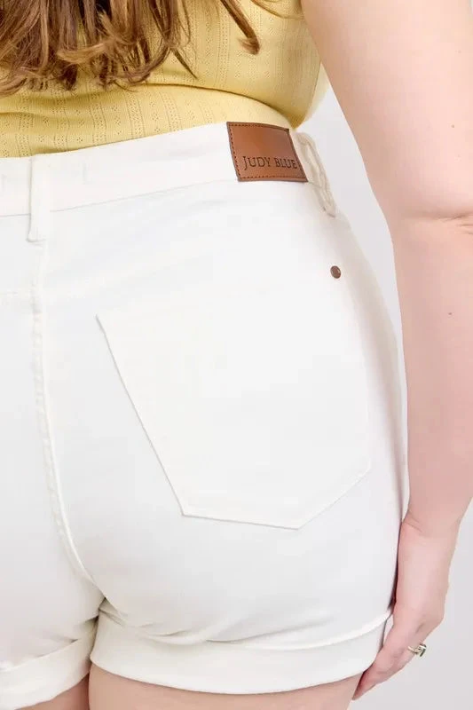 The high waist double roll cuff denim shorts offer a modern and stylish twist on a classic favorite. Featuring a flattering high-rise fit and double roll cuff detailing, these shorts are perfect for a chic and casual look. Pair them with a tucked-in blouse or a graphic tee for a trendy outfit. Show off your fashion-forward style with these high waist double roll cuff denim shorts.