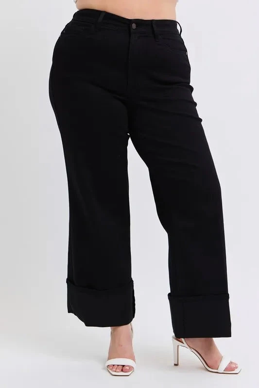 The High Waist Retro Wide Leg with Cuff jeans are a timeless and sophisticated choice for your wardrobe. With a high-waisted fit and wide-leg silhouette, these jeans offer a flattering and stylish look. The cuffed hem adds a modern and on-trend detail to the classic retro design. Perfect for pairing with heels for a dressed-up look or sneakers for a more casual vibe, these jeans are versatile and chic. Elevate your outfit with these classy and elegant wide-leg jeans that will keep you looking fashionable and polished.