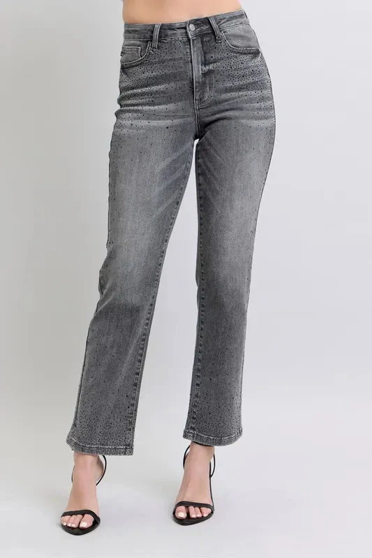 The High Waist Rhinestone Straight Jeans are a glamorous and stylish pair of denim pants that feature dazzling rhinestone embellishments. The “high waist” design offers a flattering and modern silhouette by sitting at the natural waistline. The rhinestone detailing adds a touch of sparkle and luxury, perfect for elevating your outfit for special occasions. The “straight” style of the jeans provides a classic and versatile fit that is both timeless and flattering. These jeans can be dressed up with a dressy top and heels for a night out or styled casually with a t-shirt and sneakers for a more relaxed look. The combination of high waist and rhinestone embellishments makes these jeans a fashion-forward and eye-catching choice for adding a touch of glam to your wardrobe.