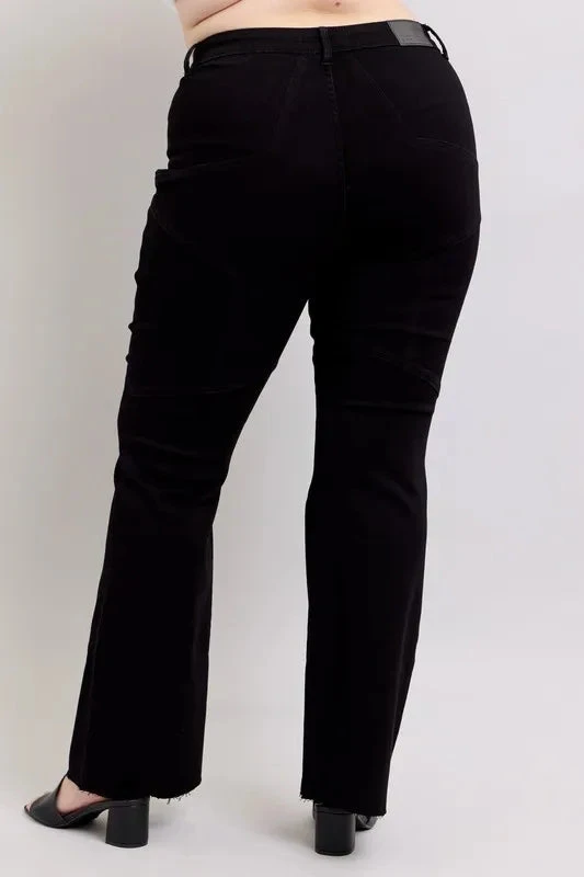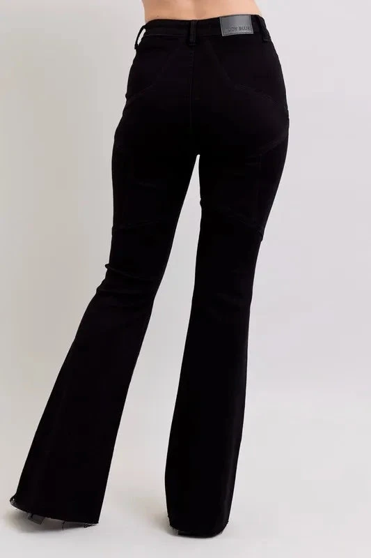 These high-waisted flare pants feature star seam details for a stylish and eye-catching look. The high waist design offers a flattering silhouette, while the star seam detailing adds a fun and playful element to the pants. The flared legs create a bohemian and retro-inspired vibe, perfect for adding a trendy twist to your outfit. Elevate your wardrobe with these versatile and chic pants that effortlessly combine flattering fit with unique design details for a fashionable ensemble.