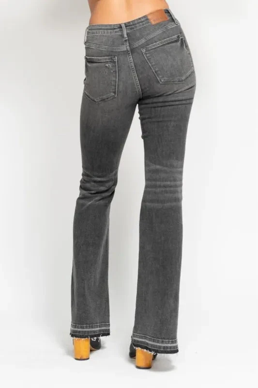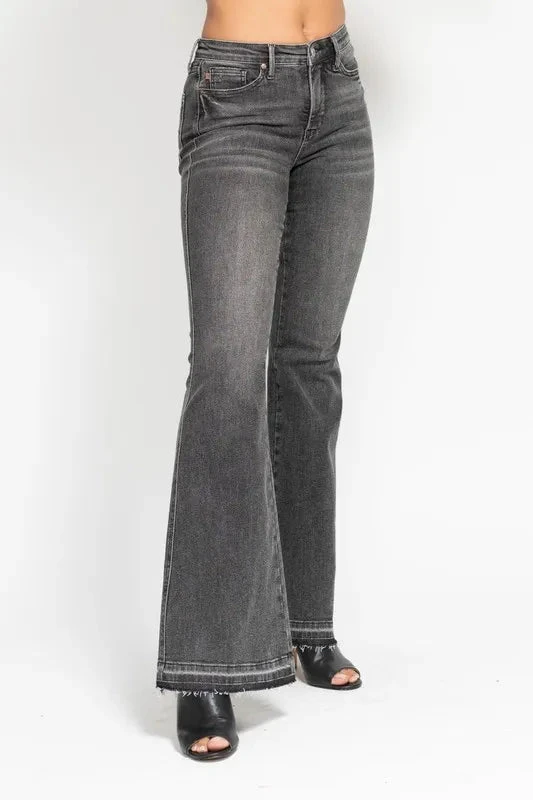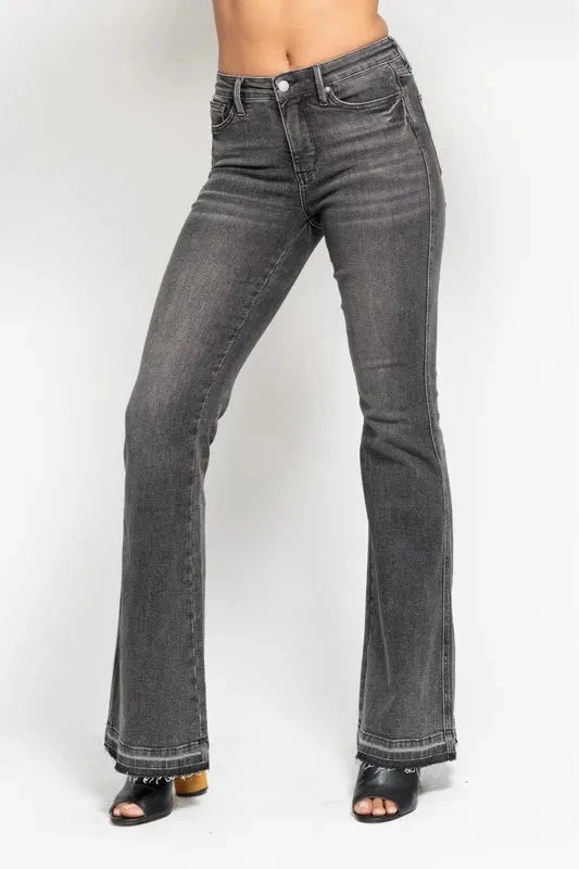 The Mid Rise Tummy Control Washed Gray Release Hem Flare Jeans are a chic and flattering choice for a stylish silhouette. With a mid-rise waist and flare leg, these jeans offer a modern and on-trend look. The tummy control feature helps smooth and shape the midsection, providing a streamlined appearance. The washed gray color adds a cool and versatile touch to the design. The release hem detail adds a trendy and unique element to these jeans. Elevate your outfit with these fashionable flare jeans that offer both style and comfort for a standout look.