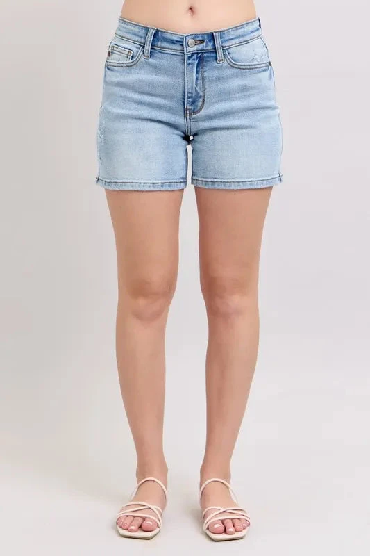 Mid-rise washed denim shorts are a versatile and classic piece for your summer wardrobe. The mid-rise waistline offers a comfortable and flattering fit that sits at the natural waist. The washed denim finish gives the shorts a casual and relaxed vibe, perfect for creating effortless and laid-back looks. These shorts are a staple for warm weather and can be styled in numerous ways. Pair them with a graphic tee and sneakers for a casual weekend outfit, or dress them up with a blouse and sandals for a more polished ensemble. The timeless appeal of denim shorts makes them a versatile and essential piece for creating stylish and comfortable outfits during the summer months.