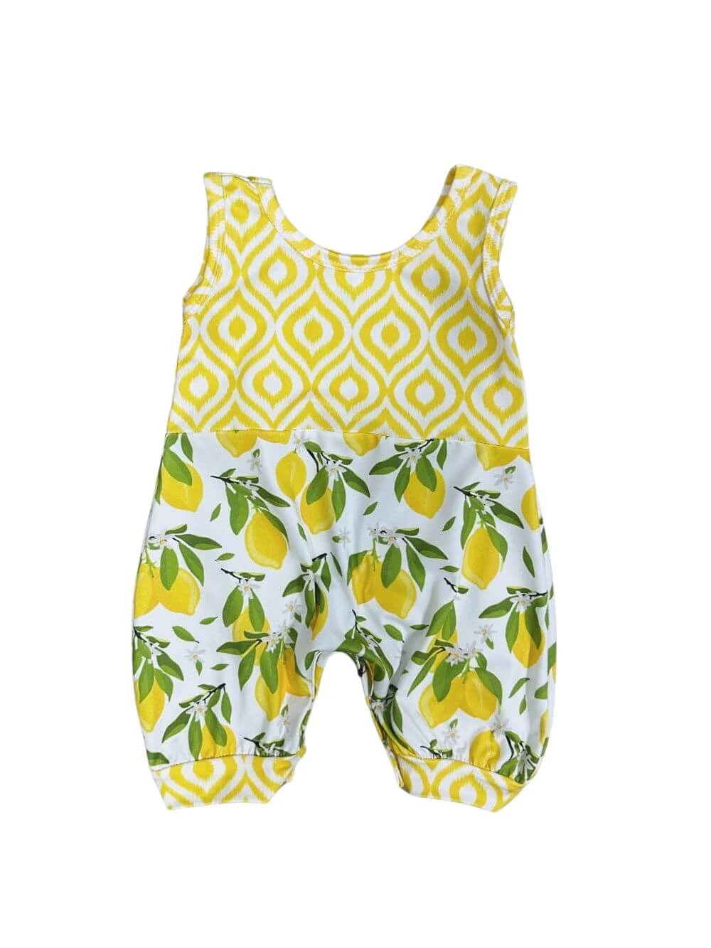 Our Lemon Drop Baby Bubble Romper is as sweet as a lemon drop! This adorable baby romper features a yellow geometric top and vibrant lemon print bottom for a fresh summer look. With soft elastic at the legs and easy snaps for diaper changes, it’s the perfect blend of cute and comfy for warm-weather outings. And be sure to check out our other must have new arrivals.