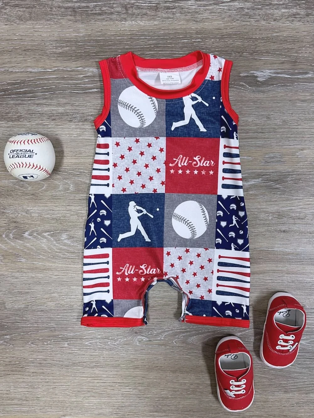 Dress your little all-star in our Little MVP Baby Boys Red, White & Blue Baseball Shortalls! Featuring a classic baseball theme with red, white, and blue details, these adorable shortalls are perfect for game days and summer outings. Soft, breathable fabric ensures comfort, while summary straps make dressing easy. A must-have for your future MVP! And be sure to check out our other must have new arrivals.