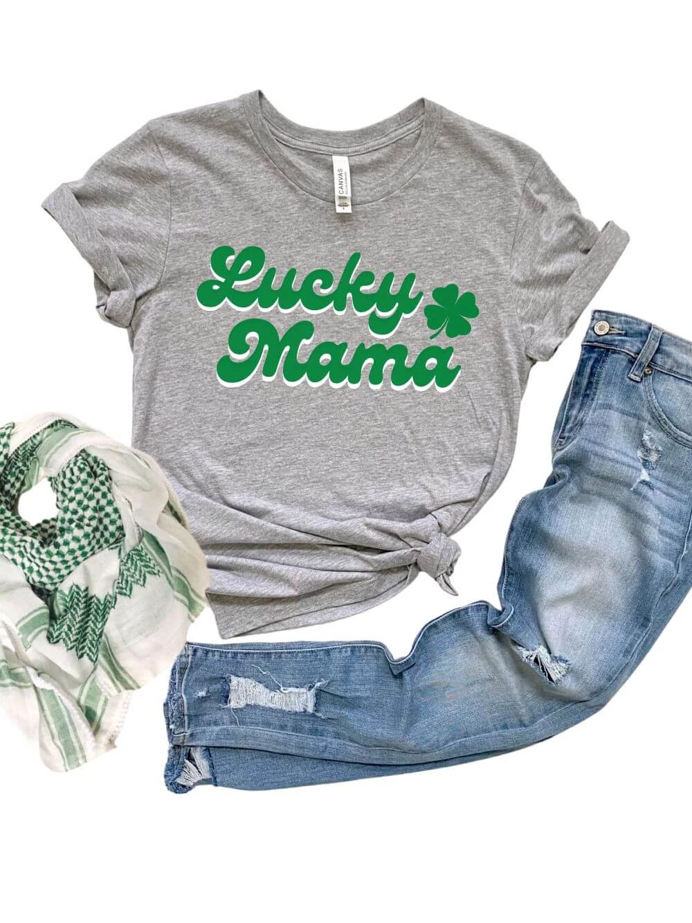 Introducing the Lucky Mama Women’s Jersey Short Sleeve T-Shirt – the perfect addition to any wardrobe. Made from soft, breathable fabric, this t-shirt will keep you comfortable all day long. The shirt features the words “Lucky Mama” written in a green and white retro font, along with a 4-leaf clover design, making it perfect for St. Patrick’s Day or any day you’re feeling lucky. A great way to show off your Irish heritage or to celebrate St. Patrick’s Day in style. With a comfortable fit and flattering design, this t-shirt is sure to be a favorite in your wardrobe. Order yours today!