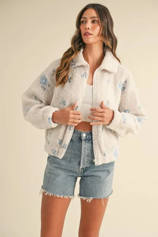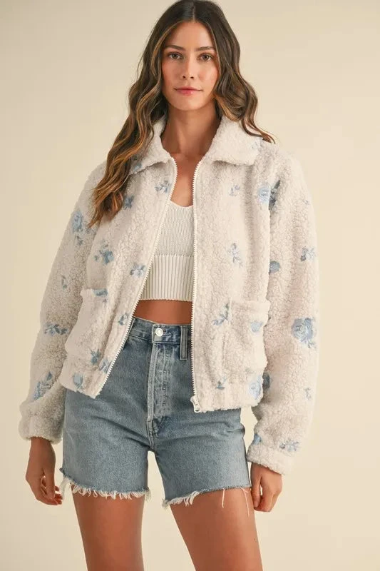 This cozy teddy jacket is adorned with beautiful floral embroidery for a charming touch. The soft fleece material provides warmth and comfort, making it perfect for cooler days. Stay stylish and snug with this floral embroidered fleece teddy jacket.