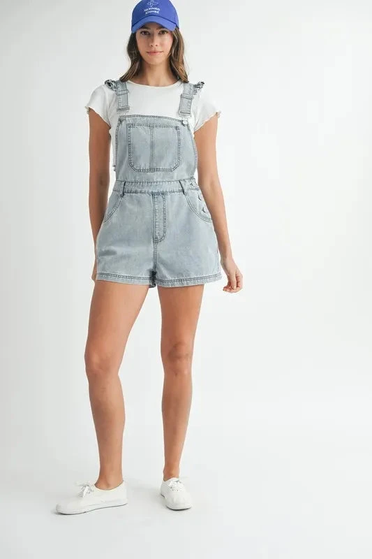 This Square Neck Ruffle Shoulder Denim Overall Romper is a cute and playful outfit that combines denim style with feminine details. The square neck design adds a modern touch, while the ruffle shoulder accents bring a charming and flirty vibe to the romper. Perfect for a casual day out or a fun summer event, this romper is both stylish and comfortable, making it a versatile piece for your wardrobe. Embrace a trendy and effortless look with this denim overall romper.
