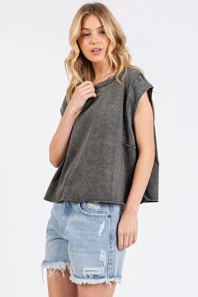 The Round Neck Cap Sleeve T-Shirt is a classic and versatile wardrobe staple that offers a simple and timeless look. With a round neckline and cap sleeves, this t-shirt provides a clean and understated silhouette that can be easily dressed up or down. Perfect for everyday wear, this t-shirt can be paired with various bottoms for a casual and effortless outfit. The cap sleeves add a touch of femininity and charm to the overall design. Stay comfortable and chic with this essential piece that can be styled in many different ways to suit your personal style.