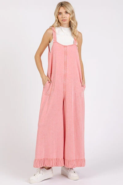The Ruffled Hem Wide Leg Overalls with Pockets offer a fun and fashionable twist on classic overalls. The ruffled hem detail adds a playful and feminine touch to the wide leg design, creating a stylish and trendy look. With the addition of pockets, these overalls are both practical and chic, providing handy storage for your essentials. Perfect for a casual day out or a laid-back event, you can style these overalls with a simple t-shirt or blouse for an effortlessly cool outfit.