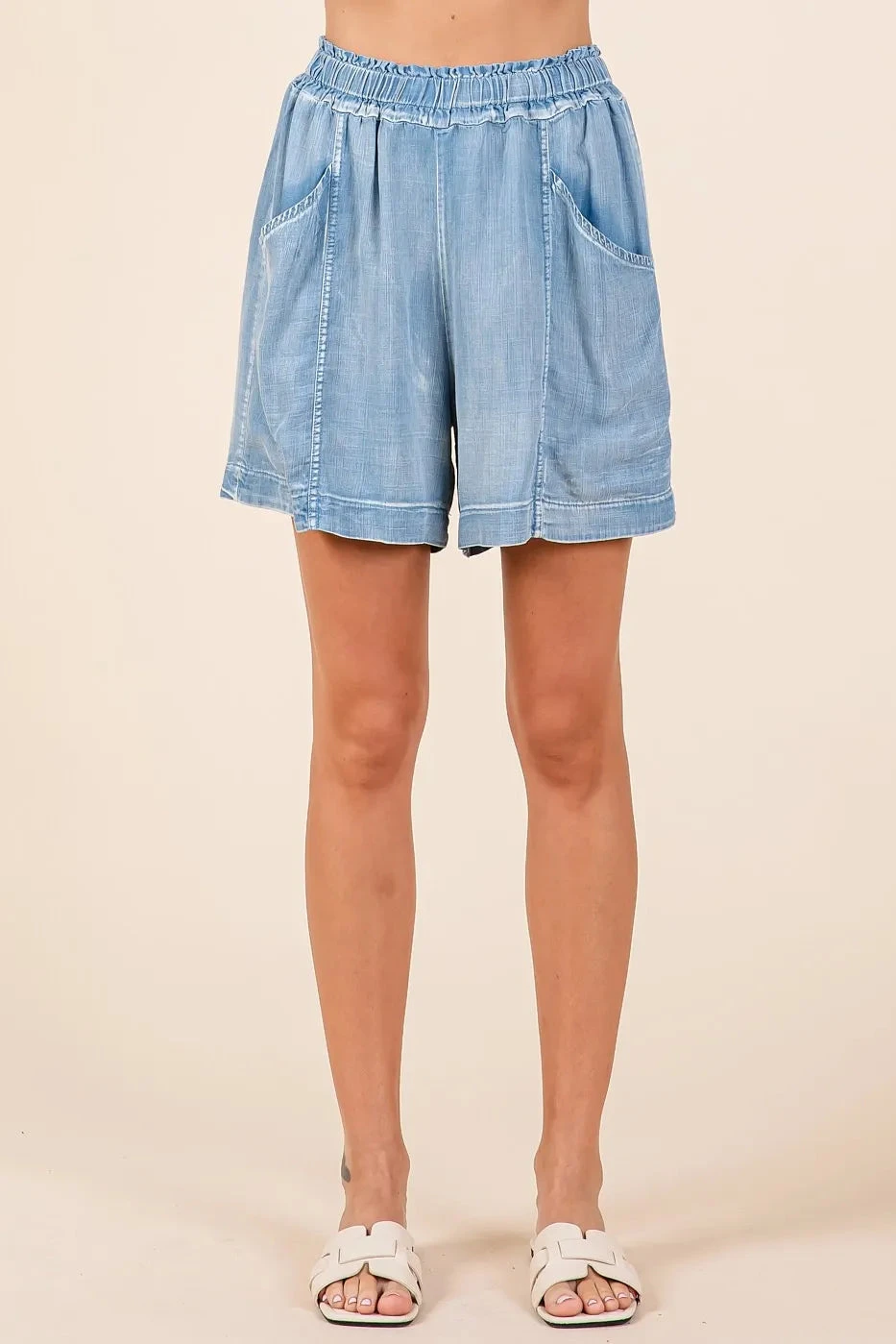 These easy fit shorts are made from washed chambray fabric with an elastic waist for a comfortable and relaxed fit. Perfect for casual days or lounging at home, the shorts offer a versatile and laid-back style. The washed chambray fabric adds a touch of texture and character to the design. Stay comfortable and stylish with these washed chambray elastic waist easy fit shorts!