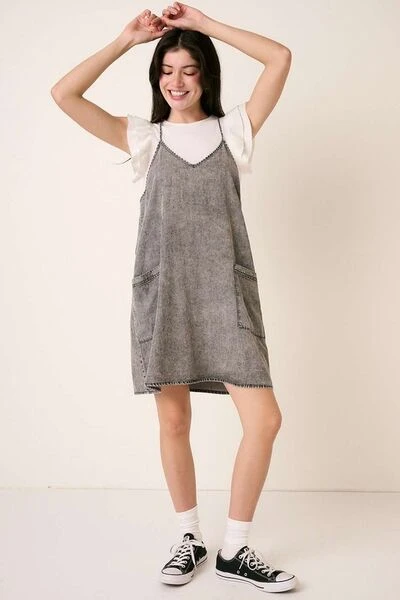 This washed patch pocket mini cami denim dress is a casual yet stylish addition to your wardrobe. The patch pockets add a touch of functionality and detail, while the mini length keeps it on-trend. Stay comfortable and effortlessly cool in this versatile denim dress.