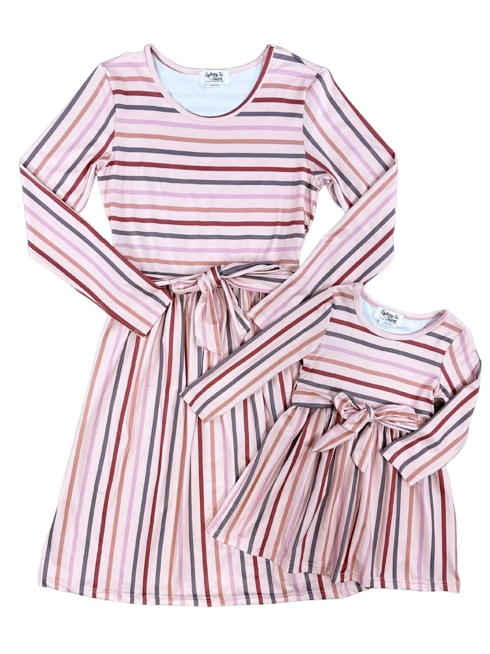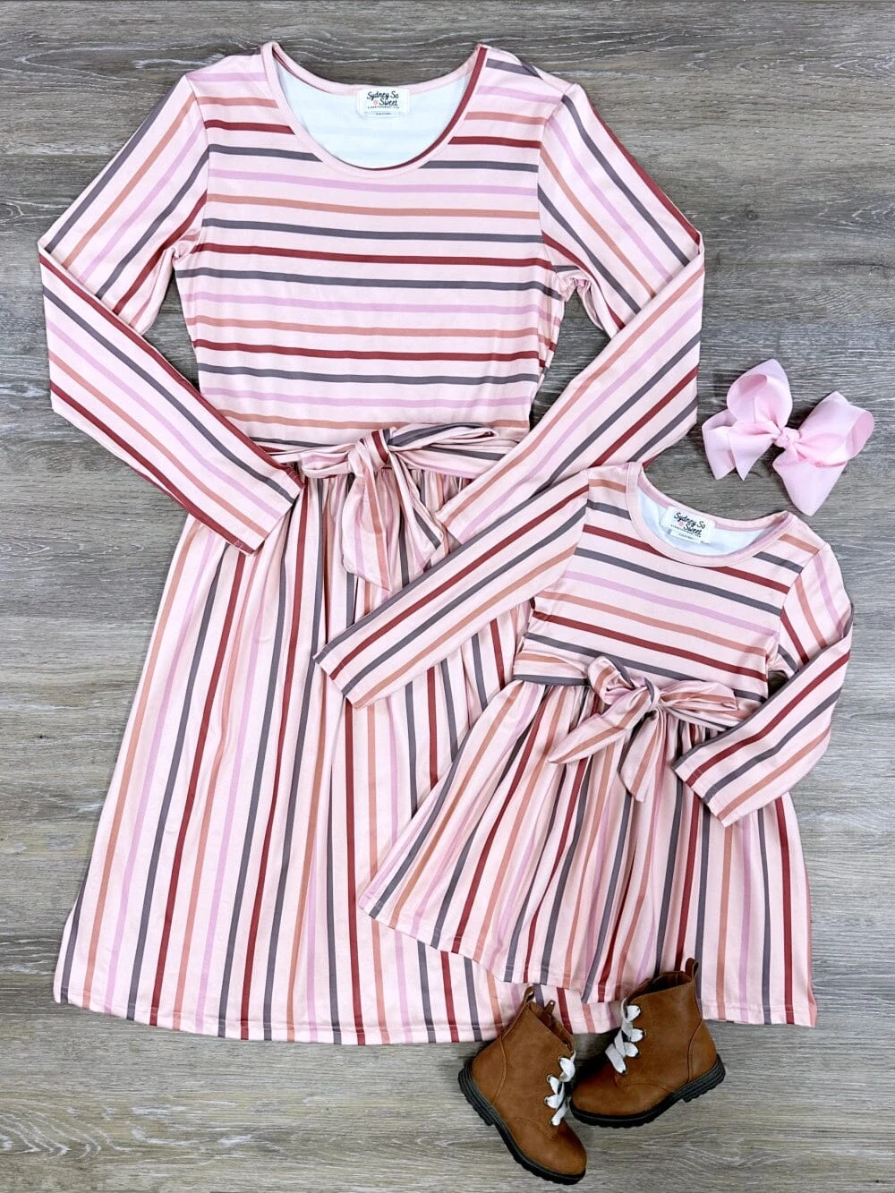 Celebrate the bond between mother and child with our Mommy & Me Striped Tie Waist Midi Dress. This matching duo features a stylish striped pattern and a flattering tie waist detail, creating a coordinated and chic look for both you and your little one. Whether for a special occasion or a casual outing, these dresses ensure you and your mini-me twirl through life in style together. And make more memories with any of our other Mom & Me looks.