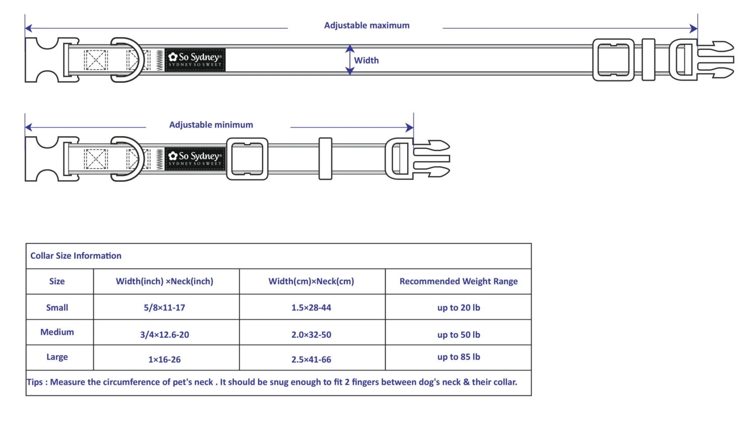 - Collar Size S: 5/8″ wide. Adjustable from 11″-17″. Best for dogs up to 20 pounds.