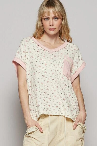 The POL Floral V-Neck Short Sleeve T-Shirt is a versatile and stylish piece for your wardrobe. Featuring a delicate floral pattern, this shirt adds a touch of femininity to your look. The V-neck design is flattering and great for layering with necklaces or scarves. Perfect for a casual day out or dressed up for a night on the town.