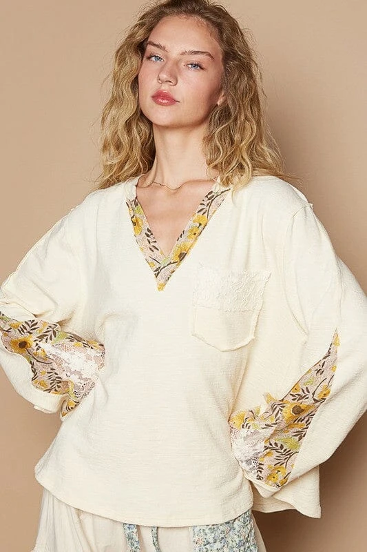 The Lace Detail Flower Printed V-Neck Knit Top is a refined knitwear featuring a delicate combination of floral prints and lace details. This garment blends elegant floral patterns with exquisite lace designs, exuding a romantic and feminine charm. The V-neck design adds a touch of sensuality and sophistication, making it suitable for a variety of occasions, from casual everyday wear to slightly more formal settings, all while maintaining an elegant demeanor. The soft and comfortable fabric ensures a lightweight and cozy feel, allowing you to stay stylish and comfortable while wearing it.