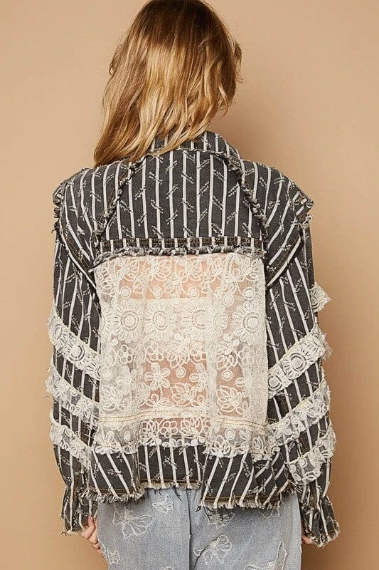 - Features: Exposed seam, Lace Detail, Ruffled, Raw Hem