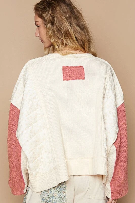 The Waffle-Knit Contrast Notched Long Sleeve Knit Top is a stylish long-sleeve knitwear with a unique waffle-knit texture and contrasting colors. The distinctive notch design and fine details make it a standout choice, perfect for pairing with jeans or skirts to showcase a sense of fashion. The comfortable fabric and slim fit make it suitable for everyday wear, exuding personality and charm.