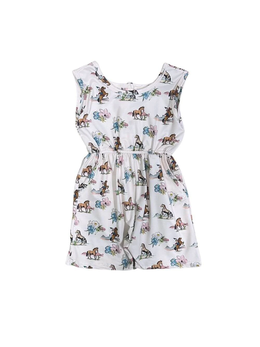 Our Pony Parade Girls Ivory Tank Shorts Romper is a sweet summer essential for horse lovers! Featuring an allover pony print on soft ivory fabric, this one-piece romper is comfy, breathable, and easy to wear. Perfect for playdates, park days, and sunny outings, this adorable outfit combines style and convenience for your little cowgirl’s everyday adventures. And be sure to check out our other must have new arrivals.