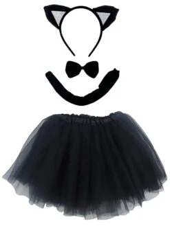 Girls Black Cat Costume – Kids Costume Set With Black Tutu, Tail, & Ears