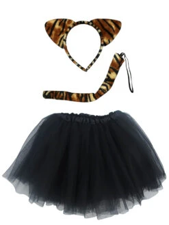Tiger Costume – Complete Kids Costume Set With Black Tutu, Tail, & Ears