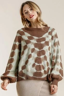 Umgee Full Size Ribbed Hem Tie Dye Round Neck Sweater Plus Size